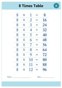Not only the full table of 8 we also provide you the worksheets also, by using the worksheet you can practice the table any time, and in this way it also helps you in learning the table. This method is the latest method of learning the table and kids also find this method interesting. Through this post we provide you table of 8 and also provide you the proper worksheets of table 8, so you can learn and practice the table easily. As a parent or a teacher, you must have to know all the resources that are useful or helpful for the learning of your child because it's a matter of the development of your child.